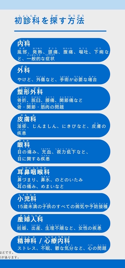 - 2ページ目【初診科を探す方法】= 症状に応じた診療科の選び方を紹介