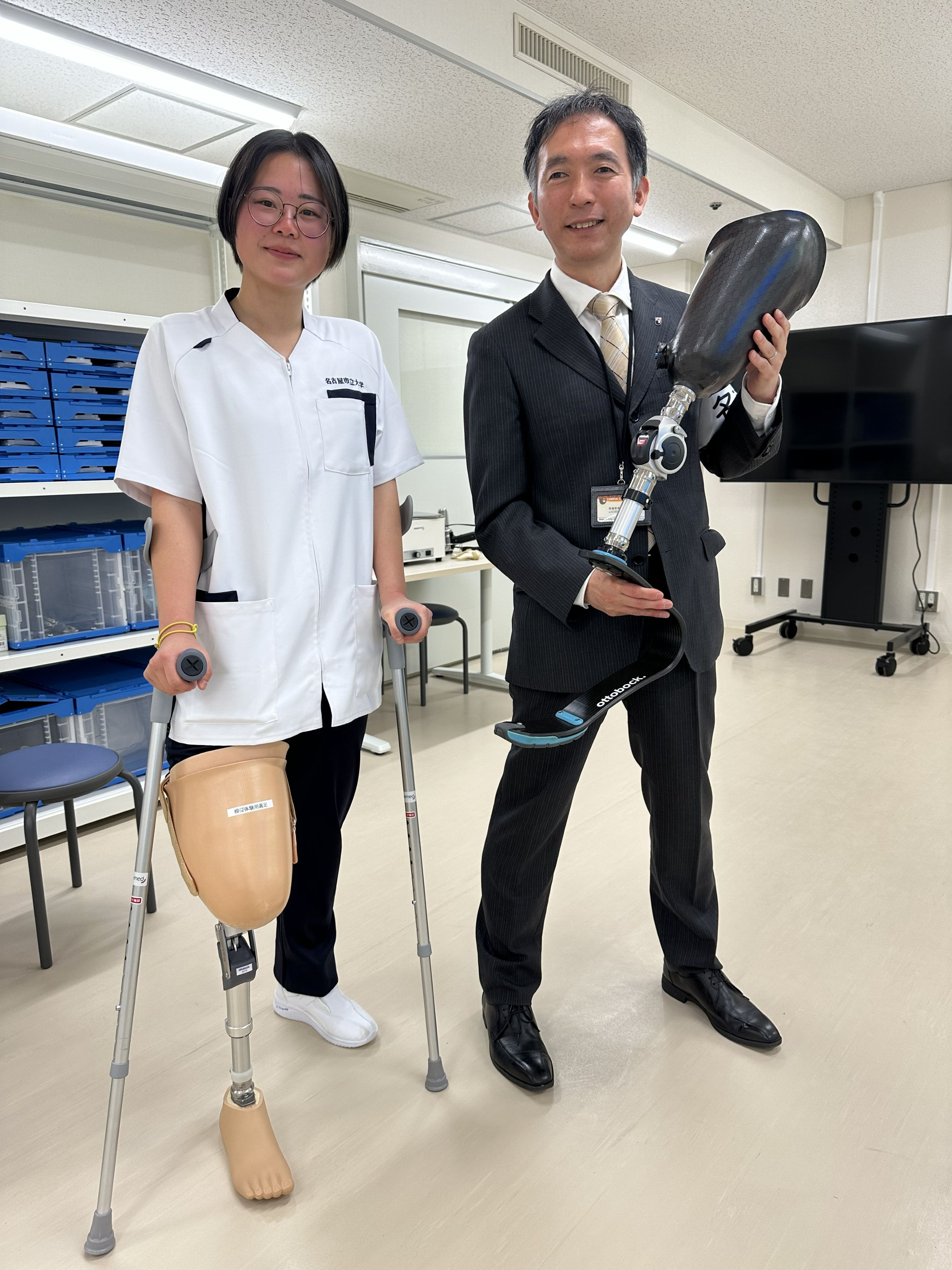 義手や義足、様々な補装具を取り揃えており、実際の装具を使用しつつ装具療法について学ぶことができます。