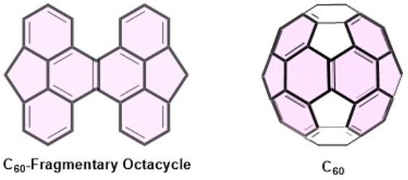 八環性C60フラグメント分子MetelykeneとC60の構造式