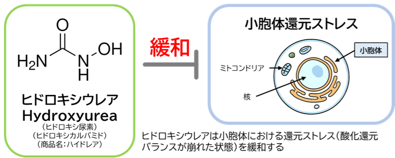 | 概要 | ヒドロキシウレア(別名:ヒドロキシ尿素、ヒドロキシカルバミド)(商品名:ハイドレア)は、鎌状赤血球症、慢性骨髄性白血病、真性多血症などの疾患に用いられる費用対効果の高い薬剤です。しかし、その薬理作用の詳細や副作用の発現機構にはいまだ不明な点が多く残されています。本研究では、ヒドロキシウレアに細胞内小器官「小胞体」における還元ストレス(酸化還元バランスが崩れた状態)を緩和する作用があることを新たに発見しました。本研究は、ヒドロキシウレアの作用機序を再解釈する重要な知見を提供するものであり、同薬の副作用の理解や新たな疾患への応用(ドラッグ・リポジショニング)への展開が期待されます。 |