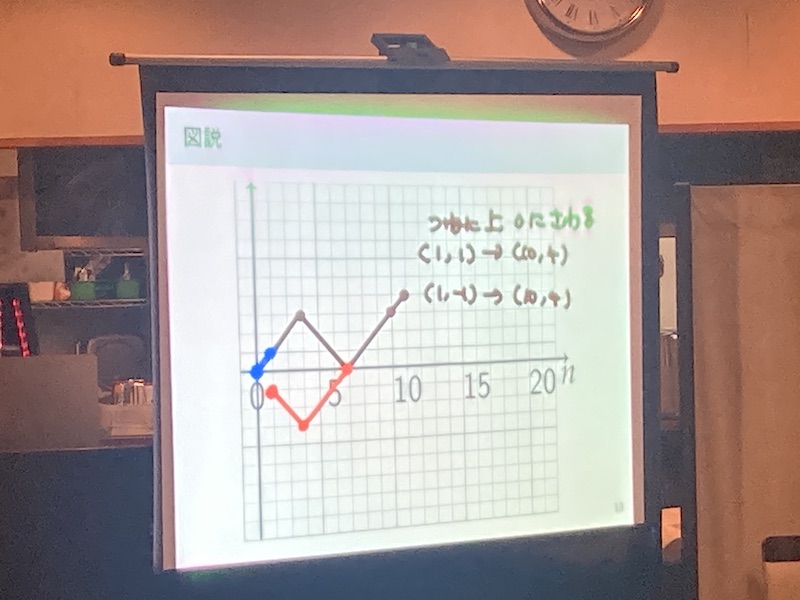 トークでは、すごろくや賭け事といった身近な偶然現象から「確率」という概念が生み出されたことが、当時の確率の問題を例に出しながら分かりやすく説明されました。「確率」は、具体的な偶発現象を元に発展するものであり、現在では株価変動のモデルや統計物理学への応用など、さまざまな偶発現象を対象として「雑食的に」発展していることが紹介されました。