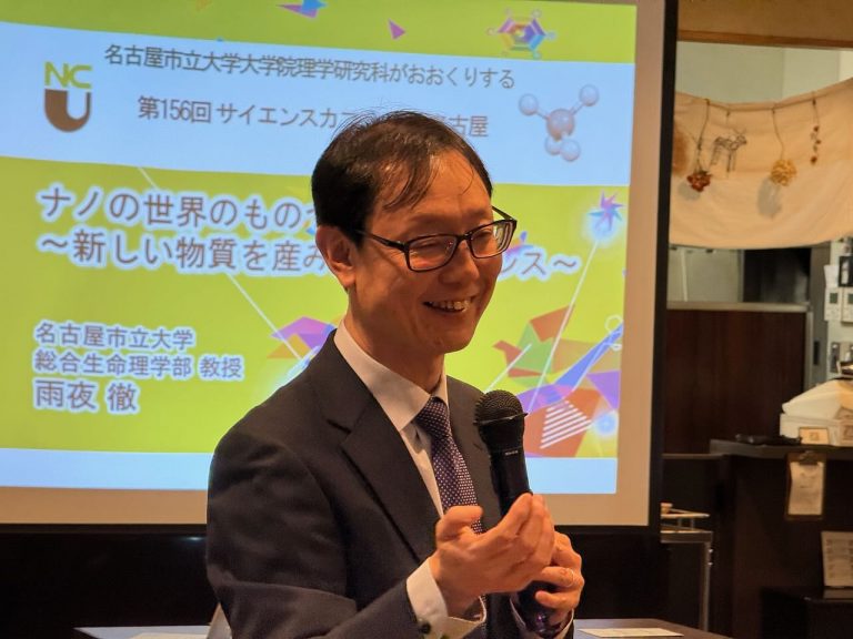 2025年1月31日(金)に、第156回サイエンスカフェin名古屋を開催しました。本研究科・教授の雨夜さんが、「ナノの世界のものづくり 〜新しい物質を産み出すサイエンス〜」というテーマで、いまだ人類が見たことがない新しい有機分子をどのように設計するのかについて分かりやすく紹介しました。