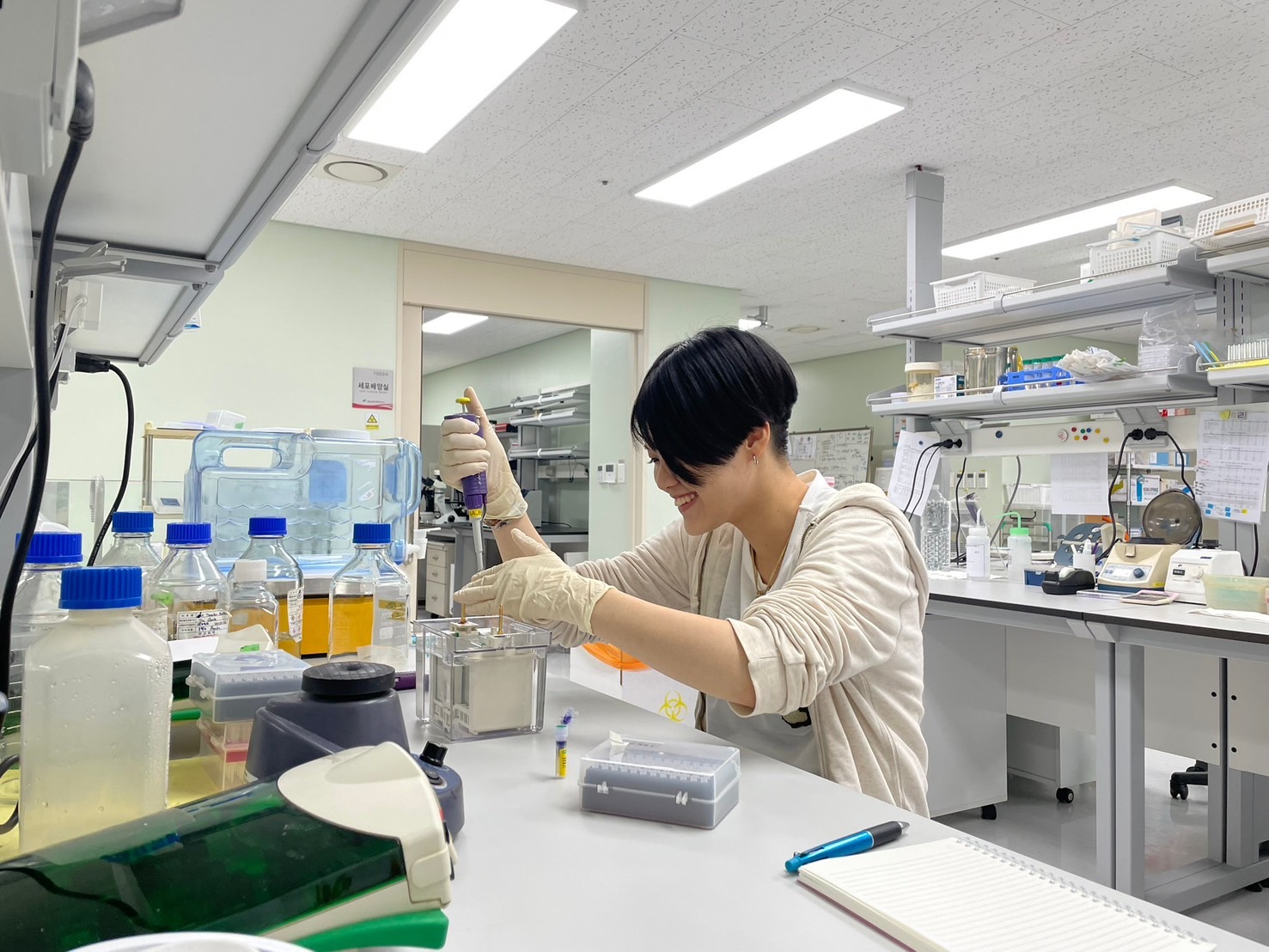 韓国にあるハルリム大学にて、18日間の交換留学に参加しました。ハルリム大学イルソン生命科学研究所では、ウエスタンブロッティング法という実験手法の学習及び習得を目指しました。研究所内での会話はすべて英語で行われ、聞きなれない研究英語に対して難しさを感じる場面もありましたが、研究員の方々が根気強く教えてくださったおかげで、次第に理解することができました。また、研究所には様々な国籍の方がいらっしゃったため、お互いの国や文化の違いについて意見を交換するなどしました。ハルリム大学での経験は、日々の講義や実習等では経験することができない、非常に貴重な体験だったと思います。これから看護研究を本格的に行っていく中で、実験や研究というものがどのような過程を踏んで行われていくのか、生化学の先端研究現場を通して学ぶことができたのはとても贅沢なことだったと感じています。この留学プログラムは今回が初めての試みだったため、今後も末永く両大学の交流が続いていくとよいと思っています。
