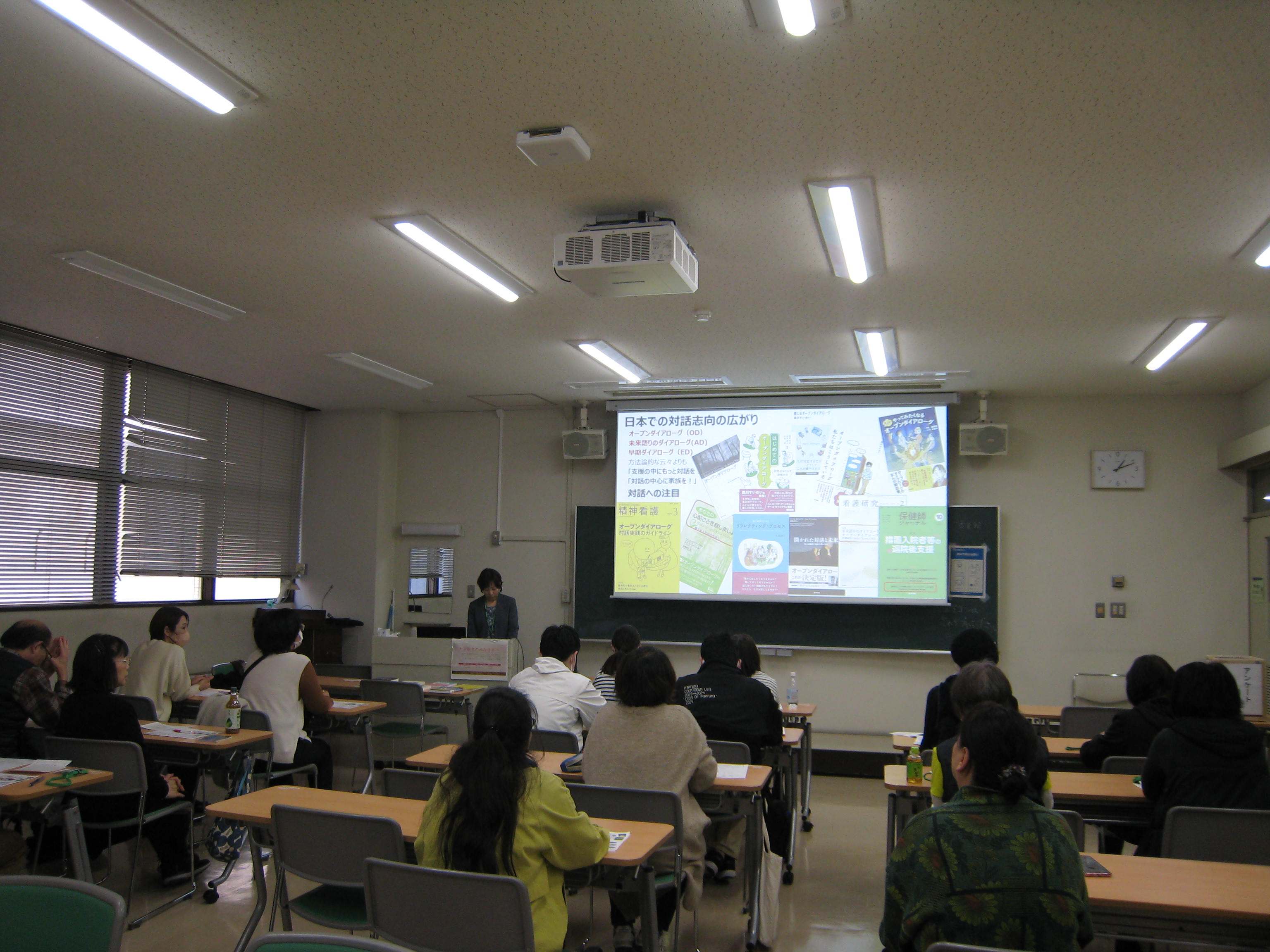 なごや看護実践セミナー「オープンダイアローグの基礎と体験」は、名古屋市立大学大学院看護学研究科 教授の門間晶子先生を講師として対面で開催いたしました。講義では「1) オープンダイアローグ(OD)とは、理念と考え方、対話への姿勢(体験①)」「2)ODの特徴;経験の捉え方、多声性を生み出すリフレクティング(体験②)」「3)ODのイメージアップと応用の提案」のセクションに分けて進められ、オープンダイアローグの基本を学ぶことに体験的な要素を取り入れながら取り組んでいただきました。受講者の皆様には、本日の学びを是非、実践に活かして頂きたいと思います。