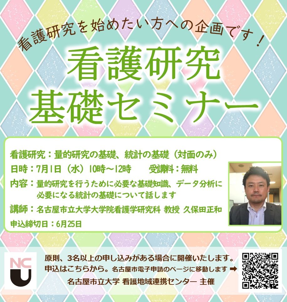 2026 看護研究基礎セミナー 「量的研究の基礎、統計の基礎」 のご案内