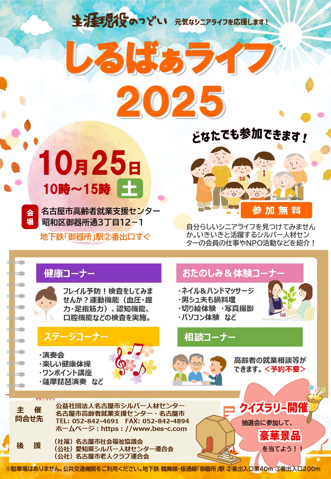 名古屋市シルバー人材センター主催の「しるばぁライフ 2025」において、本学看護学研究科の窪田泰江教授が「フレイル予防!運動・認知・口腔機能の測定会」を開催します!