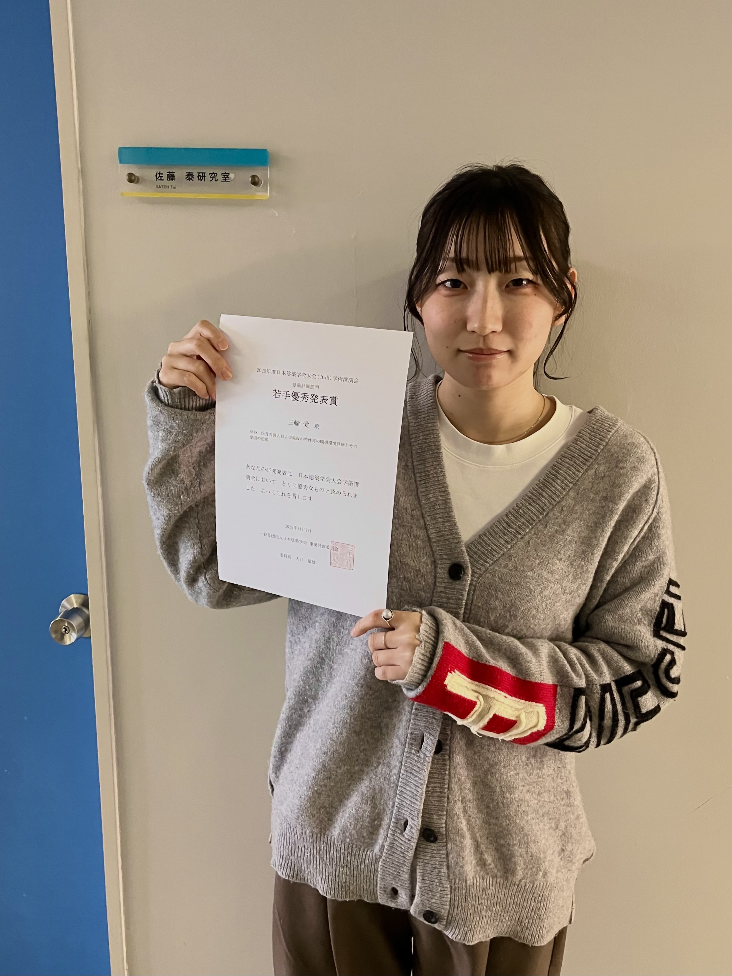 佐藤研究室 博士後期課程2年 三輪 愛さんが「2025年度日本建築学会大会学術講演会」建築計画部門で若手優秀発表賞を受賞しました